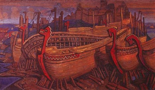 Wassily Kandinsky painted Volga Song with oil on canvas and, man, it's a trip! The way Kandinsky puts down paint is so full of gusto; you can tell he's really feeling it, getting into the process of making. Check out the surface: the colors are pretty dense and opaque, but he doesn't blend everything perfectly. See how you can still make out individual strokes and dabs of color? It's like he's inviting you to see the painting being built, layer by layer. The water, for example, is a thick soup of blues and reds. They sit next to each other, almost fighting, but somehow they make a kind of shimmering, watery surface. It makes me think about Paula Modersohn-Becker who explored similar themes of folk culture, using a similarly bold approach to color. In the end, we’re all just talking to each other through paint, trying to figure stuff out, and leaving plenty of room for questions.