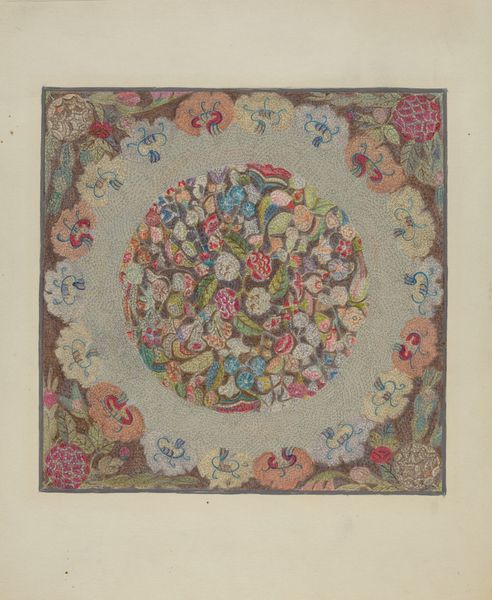Editor: We’re looking at Marie Lutrell’s "Calico" from 1939, done in watercolor. The tight, repeating floral pattern feels almost like wallpaper. How do you interpret this work? Curator: I see this work as situated within the historical context of the interwar period, a time when domesticity and traditional feminine roles were often reinforced, but also subtly interrogated. The choice of "Calico", often associated with inexpensive textiles, along with the medium of watercolour, considered a "feminine" art form, could be interpreted as both an embrace and a critique. Editor: A critique of what, exactly? Curator: Perhaps a critique of the limited roles available to women during that time, a commentary on the tension between prescribed domesticity and the desire for individual artistic expression. Lutrell’s deliberate arrangement and the visual labor invested in this design elevate the medium and challenge the perception of mere decoration. Editor: That’s interesting! I hadn't considered that angle. It feels like more than just a pretty pattern now. Were there any specific art movements that influenced this kind of work? Curator: We can relate this work to the Pattern and Decoration movement that pushed back against the stark minimalism and patriarchal art history narratives of the previous generations. By reclaiming supposedly ‘low’ art forms like textile design, artists subverted the established hierarchies of the art world. This drawing serves as an insight into this history. Editor: So, it's both pretty and political. I appreciate seeing that connection now. Curator: Precisely! By analyzing it within the socio-political and art historical context, "Calico" offers an intersectional narrative about gender, class, and artistic expression.