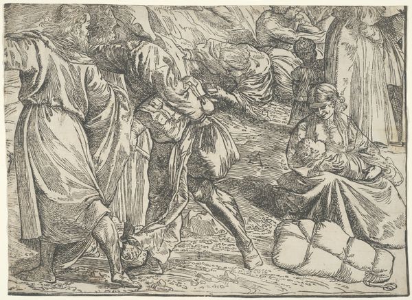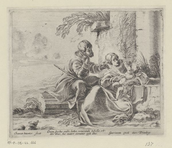 Editor: Here we have "Putto bellenblazend," or Putto Blowing Bubbles, a pen and ink drawing by Paul Troger, created sometime between 1708 and 1762. The style seems very Baroque. It's a little melancholy, maybe because the monochrome and detailed linework make it feel quite serious. What do you see in it? Curator: Oh, I find this little fellow rather endearing, actually! Blowing bubbles…it’s such an ephemeral act, isn’t it? Like youth itself, fleeting and iridescent. The allegory here, and this reminds me of earlier Dutch vanitas paintings, speaks to the transience of life and earthly pleasures. A gentle memento mori. See how carefully Troger captures the light on the drapery, too, it lends the scene a touch of the dramatic. Tell me, what does the presence of a putto – this chubby cherub – suggest to you in this context? Editor: I guess it emphasizes innocence and youth as being just as fleeting as bubbles. The way he's so absorbed really brings that point across. I hadn’t connected it to vanitas paintings before, but that makes total sense now. Curator: Exactly! There’s a vulnerability there. That said, there's a playful quality as well – the sheer delight of creation. Baroque art often embraces such complex and, at times, contradictory emotions. Editor: So it’s not just about death and decay? It also hints at the beauty and joy of… bubbles? Curator: Precisely. The Baroque sensibility delights in these contrasting ideas, wouldn't you agree? Think of the lavish ornamentation juxtaposed with sombre themes we often see. This drawing offers that same delicious tension on a smaller, more intimate scale. It's got me wondering about childhood and how fleeting joy always is. Editor: I’m glad we took a moment to reflect on such a fragile work.