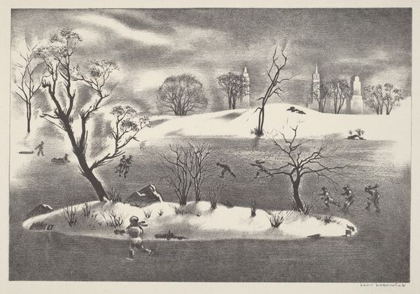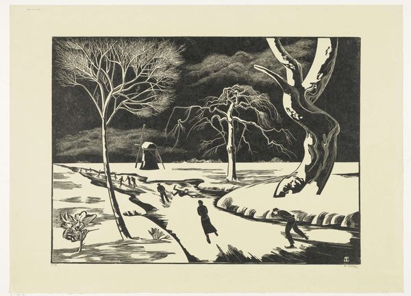 Ronau William Woiceske created this print, depicting a snow-laden landscape under a full moon, evoking both serenity and an underlying sense of mystery. The moon, a powerful symbol, looms large. Across cultures, the moon has symbolized the passage of time, cycles of nature, and the subconscious. This celestial body is a mirror reflecting back our own inner depths. It evokes an emotional response, stirring up feelings of introspection and the unknown. Think back to classical depictions of Diana, the moon goddess, or even further to ancient lunar deities, each reflecting humanity's enduring fascination with this orb. Consider the path, those shadows in the snow suggesting the way of life, which are reminiscent of similar paths in, for instance, Caspar David Friedrich's landscapes. The paths invite us on a symbolic journey and also hint at the transient nature of existence. These motifs echo through art history, revealing our collective fascination with the cyclical and transformative power of nature.
