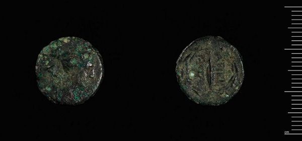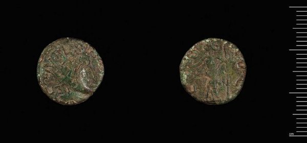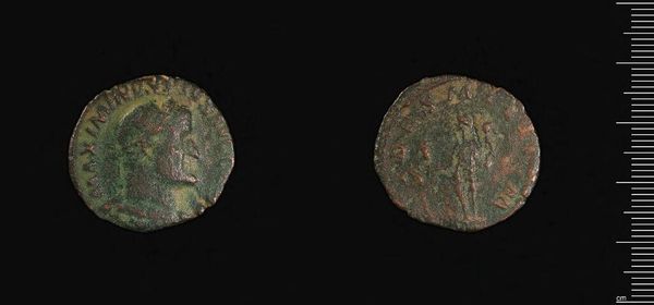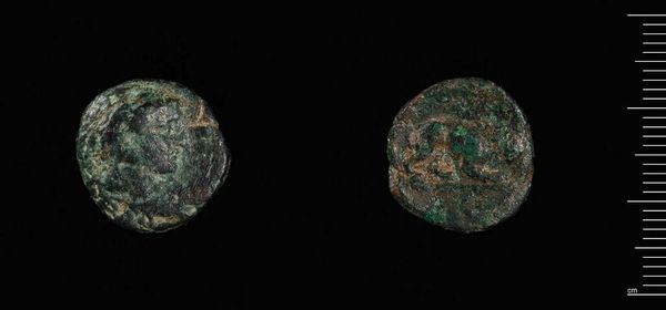 Curator: Looking at this small coin, I sense the weight of history. It’s like holding a whisper from the past. Editor: Indeed. This is a Roman coin of Constantius II, currently held in the Harvard Art Museums. It’s incredible how such a tiny object, just over 3 grams, can tell such a complex story. Curator: It's worn smooth, yet there is a regal profile etched on one side and some kind of military symbol on the other. Imagine the hands it passed through, the transactions it facilitated. It’s a tangible link to an emperor and his empire. Editor: Absolutely. These coins were powerful tools of propaganda. The emperor's image, carefully crafted and widely distributed, reinforced his authority throughout the vast Roman territories. Curator: There's a quiet beauty here too; even in its decay. A reminder that empires rise and fall, but art, in its many forms, endures. Editor: Yes, and that even the smallest artifact can offer us the largest perspectives.