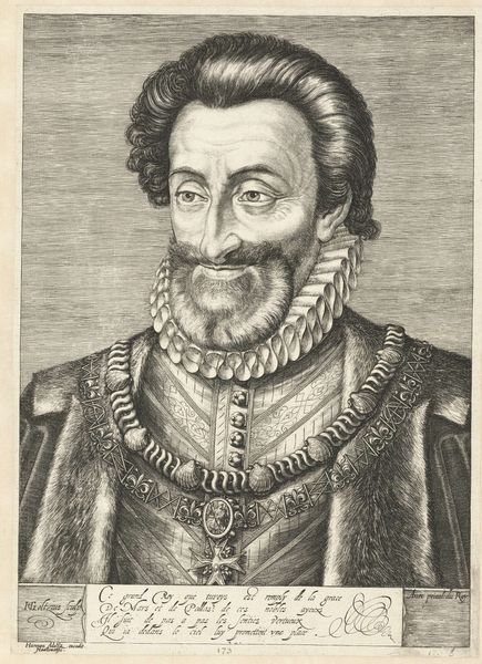 Hendrick Hondius I created this engraving, “Portret van Henry de Bourbon,” around 1630. It captures Henry IV, King of France, whose life was a complex navigation of religious and political strife. Born into a Protestant family, Henry converted to Catholicism to become king, famously stating, "Paris is worth a mass.” This act highlights the tensions of religious identity and political expediency in a society deeply divided by faith. Hondius’s portrait, made after Henry’s death, presents a regal figure, armored and framed by Latin text which translates to, ‘To subdue the proud, to spare the subjected.’ Consider how this image served to shape the memory of a leader who sought to bridge divides, even as he faced challenges of religious conflict and power. The portrait invites us to reflect on the cost of leadership and the complexities of identity in times of political transformation.