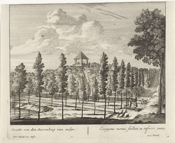 Jan Smit's etching captures a view of the Sterrenberg in the gardens of Kasteel Rosendael. Dominating the scene are the ordered rows of trees, a symbol of man's attempt to control and shape nature. Gazing upon this image, one cannot help but think of other gardens throughout history, like the formal gardens of Versailles, each reflecting humanity's desire for order amidst the chaos of the natural world. Consider the obelisk-like trees: they echo the ancient Egyptian symbol of the obelisk, representing stability, creativity, and power. These symbols, passed down through history, find new life here, in a Dutch garden. The symmetry and the carefully planned space evoke a sense of calm and control, yet, perhaps, a hint of subconscious unease – a reminder of the tension between nature's wildness and man's ambition. The image reminds us that symbols and forms are not static, and they evolve, resurface, and take on new meanings in different contexts, echoing through time.