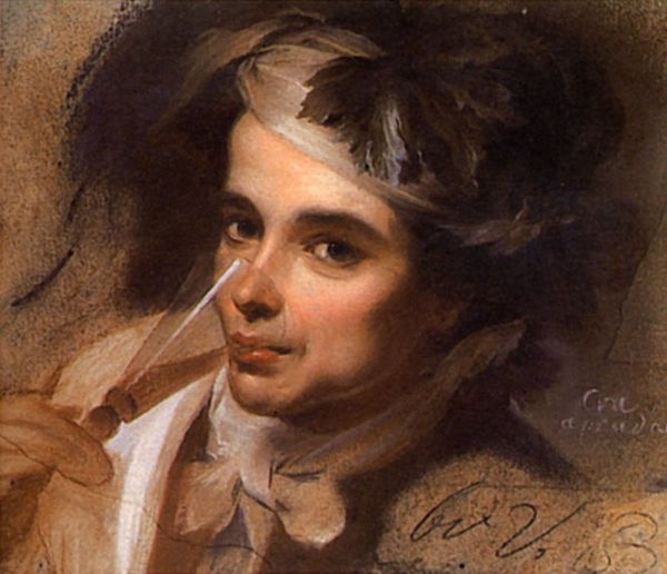Jean-Auguste-Dominique Ingres painted "Paul Lemoyne," sometime in the 19th century, it's an oil on canvas measuring 46 by 35 centimetres. The portrait is characterized by a stark contrast in light and shadow, creating a dramatic, almost theatrical presence. Notice the smooth, porcelain-like finish of the skin, sharply juxtaposed against the roughly rendered background and clothing. Ingres was a master of line, yet here he uses colour and chiaroscuro to model form. The precise lines around the face draw attention, while the soft, diffused light gives depth. His formal approach, steeped in classical tradition, uses idealization. But this portrait also hints at Romanticism’s emotional intensity. The gaze, the loose brushwork of the background, challenges the neat classifications. Ingres plays with the boundaries, testing the limits of classical and romantic artistic values. Consider how Ingres balances clarity with ambiguity. He captures a likeness and a sense of underlying psychological depth. This interplay embodies the tensions of an era grappling with tradition and change.
