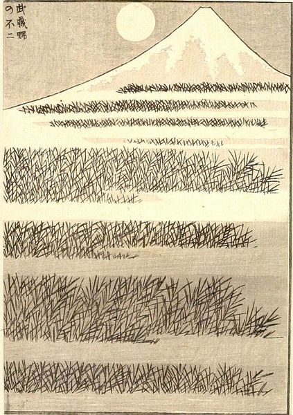 Editor: This is Katsushika Hokusai's "Fuji on the Swell," from his "One Hundred Views of Mount Fuji." The lines feel so dynamic, giving real energy to the water. How do you interpret this work within the context of Japanese printmaking and its audience? Curator: Hokusai's work, especially this series, democratized art. Printed images allowed wider access to representations of a sacred symbol, Mount Fuji, breaking down traditional elite control of imagery. Editor: So, it's not just a landscape; it's a statement about accessibility? Curator: Precisely. The mass production and distribution of these prints challenged established power structures by offering affordable art to a broader public. What do you think about the way the water dominates the image? Editor: I never thought of art having that kind of power before. Thanks!