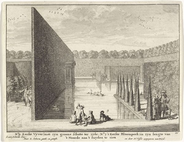This etching by Laurens Scherm depicts the lanes in the gardens at Clingendael estate. The dominant forms here are the towering, pyramid-like structures that line the pathways, shaping the space into a kind of maze. The pyramid form carries echoes of ancient Egypt, a land of mystery, knowledge, and death. As we see here, the pyramid appears as a symbol of imposing monumentality, suggesting a constructed, controlled environment. These pyramids stand as silent witnesses, perhaps alluding to the impermanence of human endeavor. Consider how the maze itself is an age-old motif. From the labyrinth of Crete, where the Minotaur lurked, to the garden mazes of European aristocracy, it speaks to the human condition. We are forever searching, forever lost, within the complexities of our own making. This imagery evokes a sense of disorientation and the quest for meaning and direction. The gardens, the pyramids, and the maze evoke a powerful mix of control and chaos, order and confusion, engaging us on a subconscious level. This cyclical progression in meaning reflects how symbols resurface, evolve, and take on new significance across time.