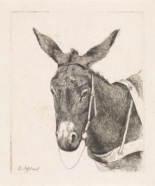 Jean Bernard drew this head of a donkey facing left, with graphite, sometime between the late 18th and early 19th century, when the Netherlands was undergoing major social and political upheaval. The image seems simple but the image of a donkey in Dutch art carries social and political baggage. Throughout the early modern period, the animal was used as a symbol of the lower classes. Its appearance here invites us to consider the place of laboring people in Dutch society, which was then experiencing its own democratic revolution and moving toward a more representative form of government. We might ask what role images like this one played in shaping popular perceptions of the working class in the Netherlands at that time. We can learn more about Bernard's political views and the social function of animal imagery by consulting historical archives and collections of prints and drawings. This will help us understand the ways the image and the social structures of its time may have been related.