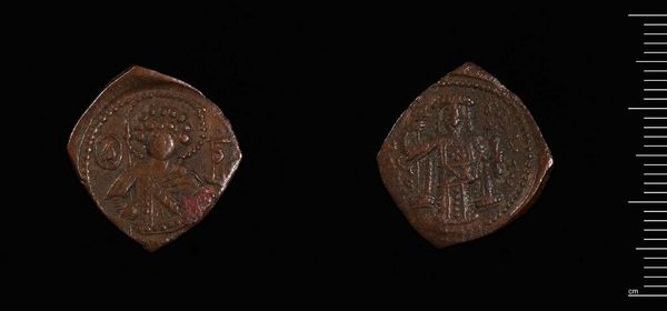 Curator: Let’s turn our attention to this intriguing artifact, a coin of Manuel I housed here at the Harvard Art Museums. Editor: My first impression is one of antiquity. The coin’s worn surface hints at a history far beyond its monetary value. Curator: It’s fascinating to consider its material composition – the base metals used, their sourcing and refining processes during Manuel I's reign. It speaks volumes about the Byzantine economy. Editor: And the imagery! The iconographic program—likely Christ on one side and the Emperor on the other—reinforces the intertwined spiritual and temporal power of the era. Curator: Absolutely. It's a potent reminder that even objects like coins are products of labor and material conditions reflecting their culture. Editor: Indeed. Seeing these symbols together offers a glimpse into the mindset of Byzantine society. Curator: Examining this coin certainly underscores the complexities of material culture and its endurance through time. Editor: It’s a small object, but laden with so much symbolic weight and historical meaning.