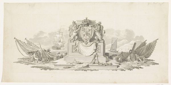 Bernard Picart etched this image of a ship in an ornamental frame in 1717. The mythological figures of Triton and Nereid flanking the central image point us to the cultural importance of maritime trade in the Netherlands at this time. In the early 18th century, the Dutch Golden Age was beginning to wane, yet the country remained a major economic power due to its extensive overseas trade networks, established by the Dutch East and West India Companies. The presence of a fully rigged ship in this etching, framed by figures from classical mythology, speaks to the perceived glory and might of the Dutch merchant fleet. As historians, we understand that images like these are not neutral depictions of reality, but rather carefully constructed representations of power. By studying archival sources, such as company records and personal correspondence, we can better understand the complex social and political context in which this image was made and consumed.