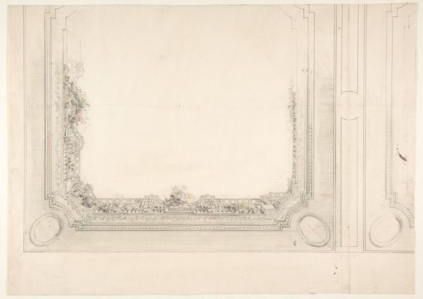 Editor: Here we have Jules-Edmond-Charles Lachaise's "Three Designs for Ceilings, H\u00f4tel Cottier," created between 1874 and 1884. It’s a drawing, primarily pencil and print, and what strikes me is how meticulously detailed the linework is, almost like an architect’s blueprint, and the almost neoclassical design. What aspects of this piece capture your attention most? Curator: I see here a fascinating intersection of design, labor, and consumption. It’s not just a pretty drawing. Lachaise documents ceiling designs destined for a hotel. Consider the labor involved, from Lachaise's detailed design to the artisans who would have executed this, the plasterers, painters, and gilders, all contributing to a decorative scheme intended to create a certain ambiance. How does the intended location, the hotel, influence your reading of the piece? Editor: Knowing it was meant for a hotel…I guess it seems more performative now. These weren't just designs; they were intended for a public space, aiming to impress and maybe even sell a certain lifestyle. Is that part of the intent? Curator: Precisely. Hotels in this period were stages for social display. The materials chosen, even the style itself referencing neoclassical ideals, speak to aspirations of refinement and luxury. The hotel is itself a commodity and so are its interior elements. The ceilings become a subtle form of marketing, selling not just a room but an experience. Editor: That makes perfect sense. I hadn’t thought of the design as being related to commodity, but hotels selling luxury makes it obvious. Curator: Exactly. And think of the paper itself, the pencil, the printing process – each step embodies material choices reflecting economic considerations, accessibility of materials and technologies shaping the outcome. Reflecting on it this way encourages us to go beyond pure aesthetics, examining how this design participated in a larger network of labor and consumption. Editor: This was incredibly insightful. It’s shifted my thinking about how architectural design isn’t just about the final product but about a whole web of processes and purposes. Curator: I agree; considering the socioeconomic contexts definitely expands the meaning behind this work, moving it beyond just a visual study.