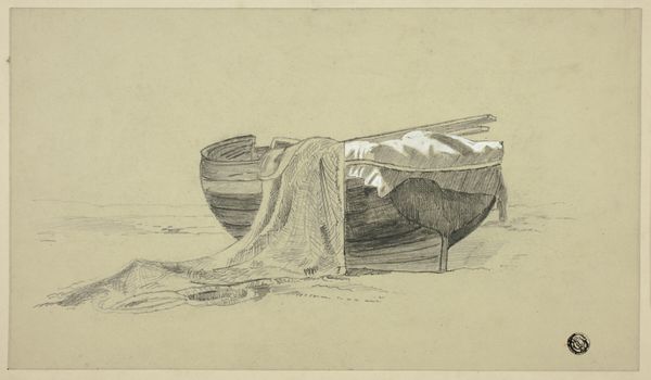 Editor: So, this is "Cape Town Beach Stand" by John Linnell, probably from somewhere between 1802 and 1882. It's a watercolor drawing, quite unassuming, but the structure in the middle is intriguing. It feels sort of melancholic and solitary. What do you see in this piece that maybe I'm missing? Curator: Well, aren't you astute! That air of melancholy resonates with me too, especially when you consider the broader context. Think about the period; Linnell lived through immense social and industrial change. This unassuming stand— isolated, rendered in delicate watercolour— speaks to the precariousness of permanence, doesn’t it? The 'extreme height 4 feet' scrawled on the side –is this about utility? Humour? And Cape Town – does it matter? It sparks an itch of curiosity, doesn't it? Editor: It really does. It’s the contrast between this sturdy-looking structure and the delicate medium that gets me. It feels...vulnerable somehow? Almost as if the beach is eroding around it, or perhaps Linnell himself saw it that way. Curator: Yes! It is Linnell finding monumental qualities in such a simple structure, one foot in industry, and one firmly rooted in observing nature. Don't you think the grey gives a sombre beauty to it, that sense of inevitable...change? Editor: I do. And that perhaps it's not *just* a beach stand, but a marker of something bigger. Some deeper observation of humanity, perhaps? It makes the "unassuming" nature of the piece quite powerful actually. Curator: Absolutely. And hopefully ignites further curiosity – that’s what a good artwork *should* do, after all, wouldn't you say? Editor: It definitely got me thinking! Thanks so much.