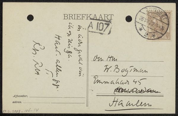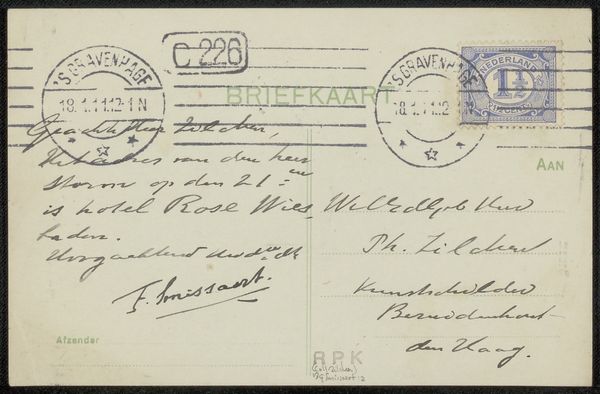 This postcard addressed to Anna Dorothea Dirks by Johan Huizinga, features handwriting and stamp marks rather than gestural brushstrokes, but it can still be seen as an act of art making. The handwriting is a series of delicate marks that create a sense of movement and rhythm across the surface. I find myself drawn to the smudged postal stamp, it’s a kind of ready-made abstract form, isn’t it? The stamp is a reminder of the context in which the postcard was created, its journey through the postal system, and its eventual arrival at its destination. The contrast between the neat handwriting and the smudged stamp creates a sense of tension and dynamism in the work. Like the work of the Fluxus artists, Huizinga elevates the everyday to the realm of art, prompting us to reconsider the boundaries between the two. The postcard becomes a testament to the enduring power of art to transform our perception of the world.