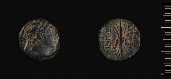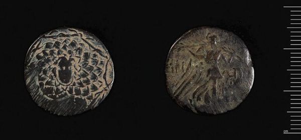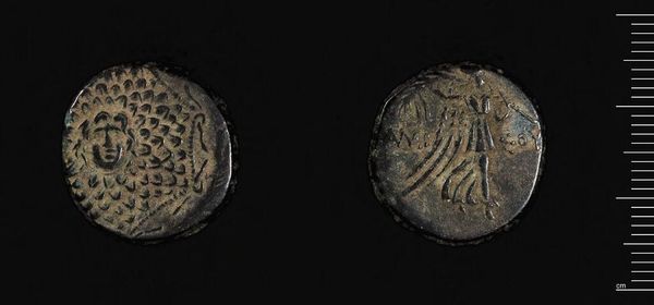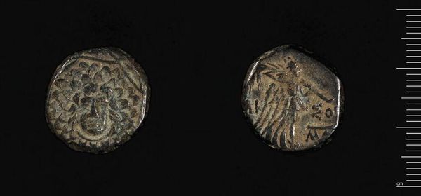 Editor: So this is a Coin of Sinope, made during the reign of Mithradates VI Eupator, currently housed at the Harvard Art Museums. It is small, worn, and carries a lot of history. What does it mean to you? Curator: It’s a testament to labor and power structures. Consider the mining of the metal, the craftsmanship of the die, and the striking of the coin. It represents a complex network of extraction, production, and control. Editor: Control? Curator: Absolutely! Currency is never neutral. It represents economic control and projects the ruler's image. Consider the resources needed to mint these, and what message Mithradates VI wanted to send. How does that change your view? Editor: I see. It is not just an object, but a record of material exploitation and an assertion of authority. Curator: Precisely. It’s a small object embodying vast social and economic forces.