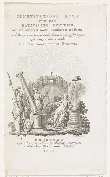 Jan Bulthuis created this design for the title page of the Batavian Republic's constitution in 1798, using pen and gray ink. It’s filled with classical allegories, signaling a move away from the old Dutch Republic. The image uses visual codes to express the ideals of the new republic. The temple on the hill, bathed in radiant light, symbolizes enlightenment. The three female figures represent virtues: armed Minerva for strength, Justice with her scales, and Liberty holding a wreath. The inscription on the altar praises the "Gericht" or "judgment" of the people. This iconography invokes classical republicanism and subtly criticizes the aristocratic rule of the ousted Stadtholder. The Batavian Republic was heavily influenced by the French Revolution. As historians, we can examine how the image’s symbolism reflects the political struggles of the time, using pamphlets, newspapers, and official records to understand better how the constitution was received and implemented, and consider how the design reflects the complicated politics of revolution and institutional change.