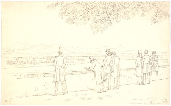 Curator: Here we have Fritz Syberg’s “Og de klappede i Hænderne…”, an ink drawing from 1928, part of the collection at the SMK, Statens Museum for Kunst. Editor: My first thought? A slightly haunting, beautiful memory, sketched from the corner of the artist's eye. There’s something so intimate in the rapid strokes of the pen. Curator: It's intriguing, isn't it? We see a gathering, maybe a celebration, yet Syberg renders the figures with an almost stark simplicity. The ink drawings such as these allow him to represent figures as well as landscape, capturing the relationship of these two features of representation within the human experience. We need to remember his connection to the Funen Painters—a group keen to depict everyday life and rural scenes. Editor: Rural life, but through such a specific lens! It feels almost dreamlike. That child reaching out—is it joy, desperation, or both? Syberg has bottled some essential, fleeting emotion in those thin lines. The expressions, though roughly rendered, vibrate. The way they face a different direction also feels very intentional to how they each absorb what’s in front of them. Curator: Exactly, it prompts us to consider the power dynamics at play. The title translates roughly to “And they clapped their hands…”, which adds another layer. The inscription is something that helps give context clues about this potentially complex family gathering, while not necessarily providing full context for us, the contemporary viewer. It feels like the figures here exist both outside of and within this historical dimension of representation, especially in terms of labor. Editor: It's funny, looking at this work. It evokes nostalgia, yes, but it's nostalgia tinged with melancholy. And, on a totally practical level, it makes me want to fill a sketchbook myself—capture the light as I see it. Curator: Syberg understood the power of art as a conduit for experiencing and understanding the intersection of our history, gender, and social environments. The raw emotion practically jumps off the page, don’t you think? Editor: Absolutely. A tender sketch, a tender moment, fleeting and somehow eternal. It feels like holding a handful of dust, watching the wind carry it away. Beautiful.