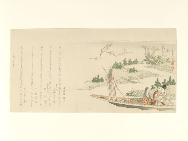 Kubo Shunman created this print of a harbor scene near Kamakura with ink and color on paper. The curve of the shoreline, echoed by the bent pines, cradles the scene, symbolizing protection and enclosure, a common visual motif in Japanese art. This protective curve, or arc, is laden with symbolic weight. Consider how a similar arc appears in Renaissance depictions of the Madonna, her cloak sheltering humanity. This visual echo resonates across cultures and centuries. The motif speaks to a deep-seated human desire for safety and nurturance, irrespective of cultural context. The inclusion of poetry, also, invites a deeper engagement with the image, intertwining visual and linguistic elements to evoke a sense of longing and contemplation. This combination of the visual and textual creates a powerful, multi-layered experience, engaging viewers on both an intellectual and emotional level. Thus, in Shunman’s print, we observe not merely a landscape, but a convergence of symbols that echo through time, revealing the enduring power of images to resonate with our collective memories and subconscious desires.