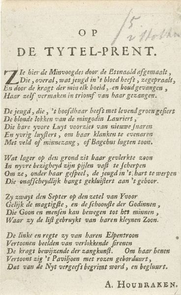 This broadside, published in 1748 by Jan Meijer, celebrates the Treaty of Aachen with symbolic figures in the engraving, such as Peace, Apollo, and Mars. The text is a poem in Dutch. Note the central figure of Peace, a motif stretching back to antiquity. Peace is associated with notions of harmony and prosperity and recurs throughout history. The personification of peace has evolved, often depicted with an olive branch or cornucopia. Consider the figure of Mars, the Roman god of war, mentioned in the poem as being defeated. Mars embodies conflict and aggression; juxtapose this with the image of Apollo, associated with light and reason. These characters form a dynamic tension, reflecting the interplay between opposing forces. The symbols in this print are not fixed; their meanings shift and adapt depending on the historical context. These images resonate with our collective memory, tapping into deep-seated emotions and desires for peace. The cyclical nature of these symbols reveals how fundamental human experiences continuously resurface through art.