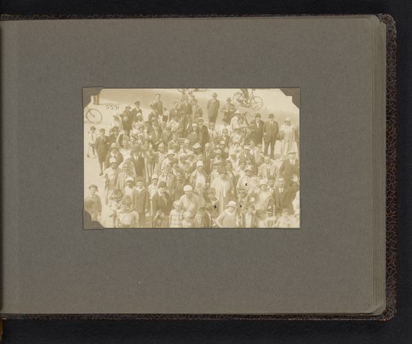 Alexander Gardner made this albumen print, depicting the Grand Army Review in Washington D.C., using photography, a relatively new medium in the 19th century that blended science and art. Albumen printing, popular then, involved coating paper with egg white and silver nitrate, making it sensitive to light. The negative was then pressed against this treated paper and exposed to sunlight, allowing the image to slowly materialize. The materiality of this print bears witness to a transformative era in image-making and mass communication. Unlike painting or sculpture, which required extensive handcrafting, photography offered a seemingly objective snapshot of reality through a combination of chemical processes and mechanical precision. This directness lent a powerful sense of realism. Photographs like Gardner's were not only artistic endeavors, but also historical documents that captured moments in time. Understanding these photographic processes enhances our appreciation for the social and cultural context of the artwork. It challenges traditional art distinctions, while at the same time placing them at the heart of visual culture.