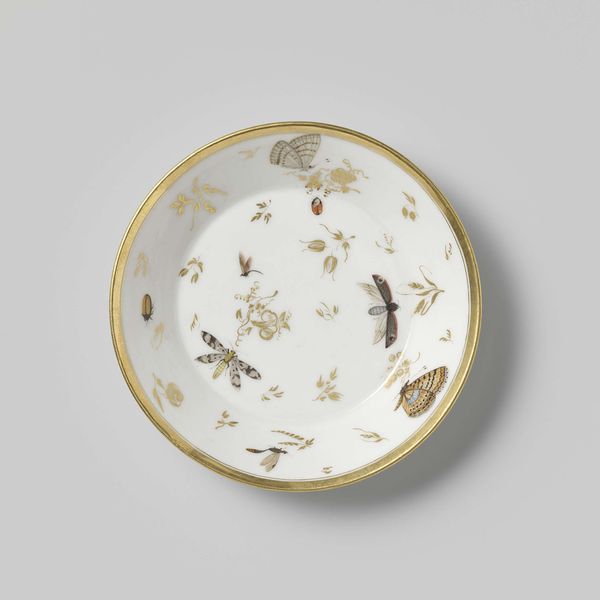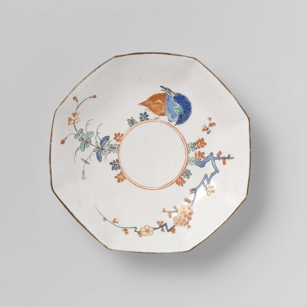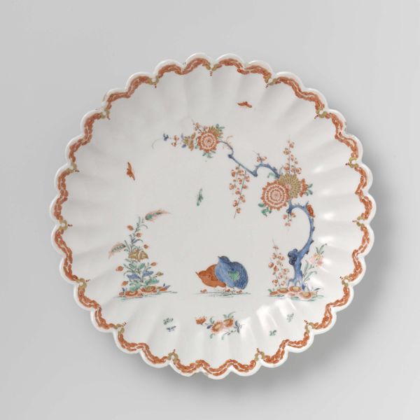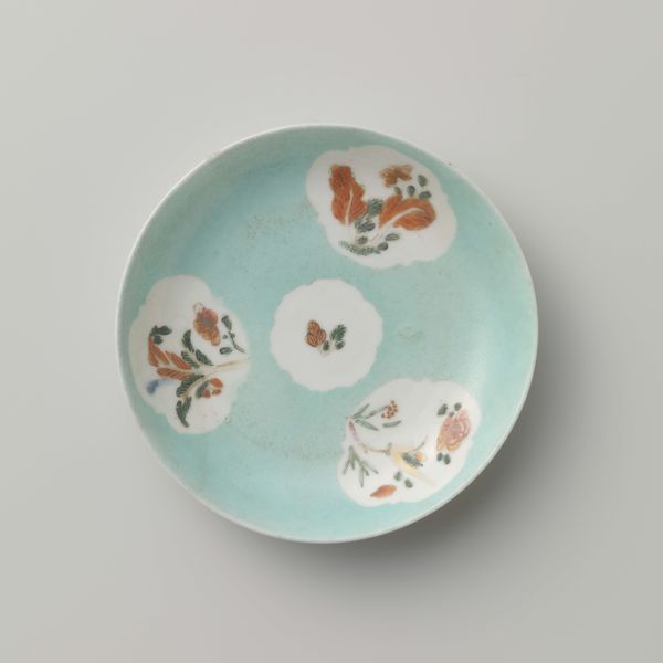 This saucer, decorated with flowering plants, was made anonymously, using skills passed down through generations. The creation of such a piece begins with the careful selection and preparation of clay. The potter then skillfully shapes the clay on a wheel, forming the basic saucer. Once dried, the piece is fired at a high temperature, transforming it into durable ceramic. The distinctive celadon glaze is then applied, giving it a smooth, glass-like surface. The design of flowering plants in shaped panels is meticulously painted by hand, a testament to the dexterity and artistry of the painter. Each brushstroke requires precision, as the colors are layered to create depth and detail. The firing process is crucial, as it not only hardens the glaze but also brings out the vibrancy of the painted decoration. Considering the extensive labor involved in the making of this piece, it allows us to challenge any traditional distinctions between the applied arts and fine art.