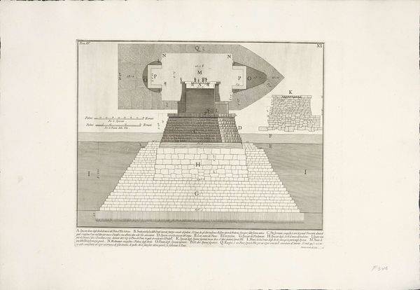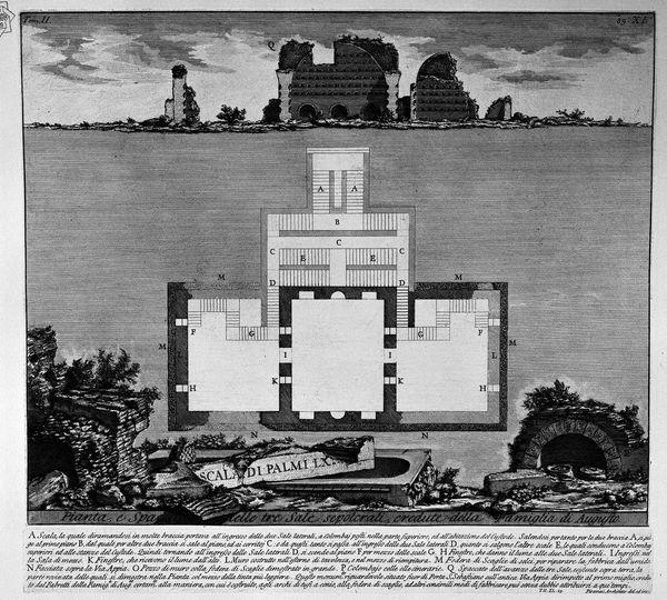 Giovanni Battista Piranesi created this print of Hadrian's Tomb in Rome in the 18th century, using etching and engraving techniques. Piranesi was known for his detailed and dramatic depictions of Roman architecture, playing a key role in shaping the era's understanding and appreciation of classical antiquity. This print exemplifies the 18th-century fascination with ancient Rome, and Piranesi's work contributed significantly to the developing field of archaeology. His meticulous renderings of Roman ruins provided valuable insights into the city's past. However, it’s important to remember that Piranesi's images were also artistic interpretations, reflecting his own romanticized vision of Rome's grandeur. The level of detail suggests Piranesi undertook extensive research, including consulting historical texts and conducting on-site observations. This print invites us to consider the evolving relationship between art, history, and the construction of cultural heritage, as well as the institutional frameworks through which that relationship has been expressed.
