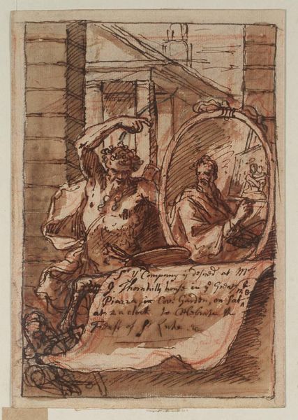 Editor: Here we have Elisabetta Sirani's "Ecce Homo," a small but powerful drawing at the Harvard Art Museums. It's rendered in warm brown hues, and, honestly, the scene feels heavy, burdened by unspoken grief. What strikes you when you look at this piece? Curator: Well, the immediacy of Sirani's hand, for one. It's almost as though she dashed this off in a fever dream, capturing a raw, unfiltered moment. This wasn't just religious storytelling; it's a glimpse into the artist's own contemplation of suffering, don't you think? Editor: I hadn't considered that, but it's true, there's a vulnerability here that's really compelling. Thanks for that insight! Curator: My pleasure! It just makes you wonder what she was wrestling with when she made this, doesn't it?