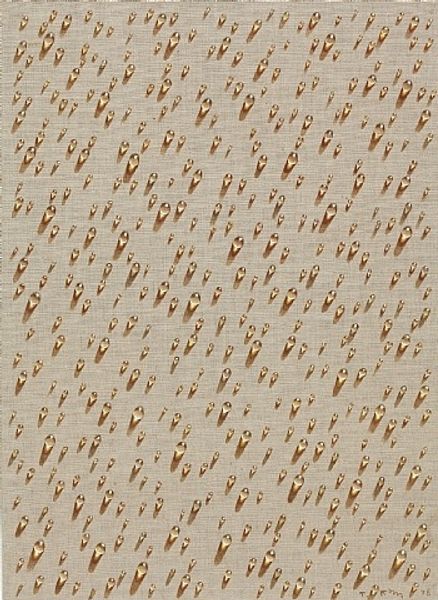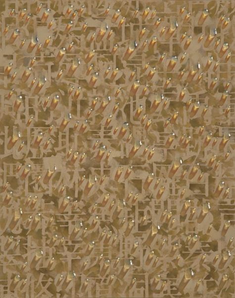 Curator: "Conjunction 92-99" by Ha Chong-Hyun. Made in 1992, the piece combines painting and mixed media techniques with heavy impasto use. What do you make of it at first glance? Editor: Immediately, I sense an echo of resilience. There's this repeated, textured pattern – it reminds me of how communities rebuild and resist erasure, particularly those facing displacement. Curator: It's fascinating you see it that way. I'm drawn to the symbolism of conjunction itself. Ha was known for pushing paint through the back of hemp cloth, creating these almost erupting forms on the surface. A metaphor for pushing through societal expectations perhaps. Editor: Definitely. He made this piece during a time when abstract art became prevalent globally after long existing underground, when a different cultural conversation had exploded onto a global stage. Curator: The monochrome palette of olive-gray enforces restraint. The symbolism lies more in the act and material transformation, not colorful distraction. Think of ink stones from East Asia used in calligraphy, creating images that arise from nothing. Editor: Right, and perhaps we can read the heavy impasto as representing the weight of historical events of that period, from social unrests in several regions around the world, the burden shouldered by communities who had very few opportunities to express themselves. Curator: That ties back to your idea of resistance and memory, certainly. The 'Conjunction' series has that constant struggle rendered through its visual form. Editor: Exactly. So much unspoken pain transformed into texture. It's also crucial to recognize that Ha, like many artists from colonized countries, engaged with, negotiated, and defied traditional orientalist readings to assert a new subjectivity on his work, which in turn asserted presence to an experience rooted in being colonized. Curator: An active claiming, absolutely, pushing past expectations as well as pushing that oil paint through the back of the canvas to claim space, creating new form. I will now think of this work with the history of Korean modernization and colonial impact on mind. Editor: Yes, art-making becomes such a loaded and meaningful experience when placed in history. Thanks for illuminating a fuller picture for us today.