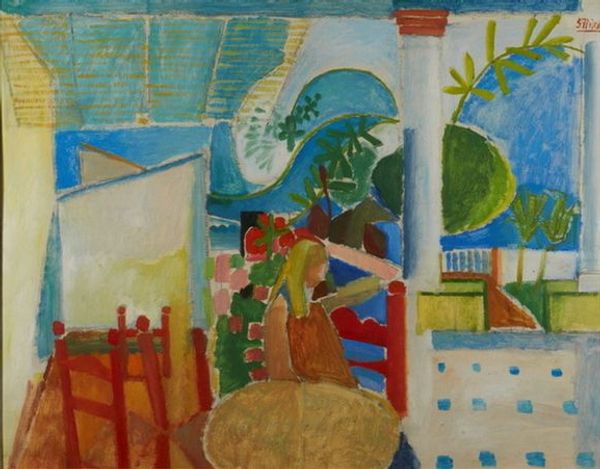 Editor: So, this is Boris Kustodiev’s “England,” painted in 1926 using oil on canvas. It’s...peculiar. Almost theatrical. There's a stage-like quality to the composition. What’s your read on it? Curator: The theatricality strikes me too. Given Kustodiev's historical context – painting this in 1926, not long after the Russian Revolution and during a period of intense social upheaval – one could interpret this “England” as less a depiction of the country itself, and more a critical commentary on perceptions and idealizations of the West. How might the stage-like setting influence that reading? Editor: It's like a set design, everything seems a little artificial and over-the-top, rather than realistically capturing English society or urban landscape. All of that makes it seems performative. Is it that the painting's not necessarily about literal England, but rather Russia’s perception, a distorted or romanticized view of it? Curator: Exactly. Think about the motifs he includes. What about those heavy chains and gears contrast with the dollhouse-like buildings and ornate fabrics? Perhaps, the chains and gears symbolize industrial power or the heavy hand of political systems, while the dollhouse England might represent idealized visions. How does Kustodiev's artistic license change our historical perception of the country in 1926? Editor: It’s like a satire then. England as a spectacle, with industrialization and fantasy clashing. The artificiality highlights the difference between reality and how Russia sees them or hopes them to be. Curator: Precisely. This piece allows us to examine the socio-political climate of Russia through their distorted depiction of Western Society, and, more importantly, its imagery, both manufactured and authentic. Food for thought, isn't it? Editor: Definitely, I went in thinking "cityscape", now I am leaving thinking about propaganda.