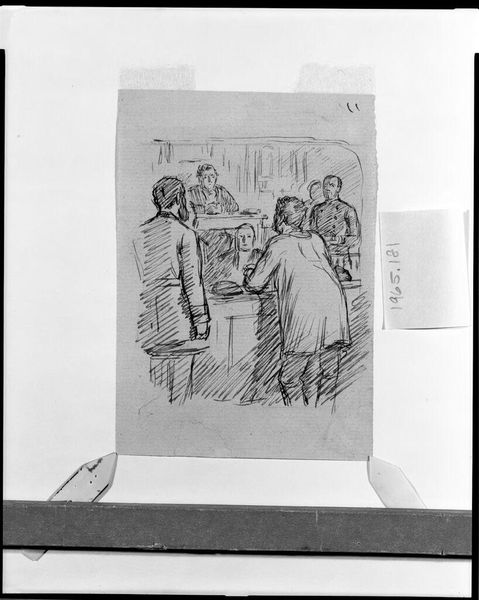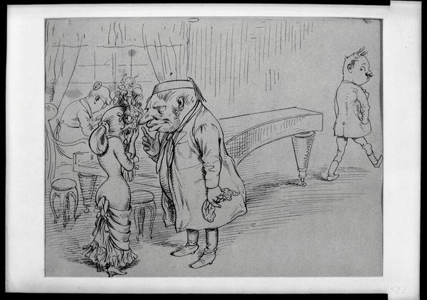 Curator: This is an intriguing gelatin silver print simply titled "Untitled (parents and children in doorway)," created by Lucian and Mary Brown. It is part of the collection at the Harvard Art Museums and measures about 4 by 5 inches. Editor: The immediate impression is one of threshold and transition. The doorway acts as a potent symbol. Curator: Absolutely. The image captures a family—parents, a young boy, and a girl—framed by the architectural structure. Consider how the doorway itself signifies not only a physical space but also a liminal one. Editor: And look at the mother's hand gently placed on the child's back—a powerful symbol of guidance and protection, while the open doorway behind them hints at the future, the unknown. Curator: It is also a snapshot of social constructs, as are all family photographs. The Browns subtly reveal the importance of familial bonds in shaping cultural values and personal identity. Editor: The photograph definitely prompts a reflection on family, on home, and the continuous passage of time. Curator: It makes one consider the impact of such images on the formation of memory and identity.