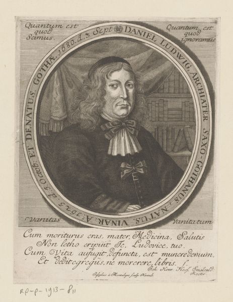 Jonas Suyderhoef created this portrait engraving of Laurens Banck. The oval frame around Banck contains inscribed text, a common convention in portraiture since antiquity, underscoring the subject's identity and status. Banck is identified as a professor at the University of Franeker. Note the prominent lace collar. This detail is far more than mere fashion; it speaks to a tradition of elaborate neckwear that can be traced across centuries. Consider the ruffs of the Elizabethan era or even the draped fabrics of ancient Roman portraiture. These elements are not merely decorative, but symbolic—indicators of wealth, status, and intellectual prowess. This seemingly simple portrait of Laurens Banck is a complex tapestry woven from threads of cultural memory, echoing motifs that have resonated across the ages. Its non-linear progression has resurfaced and evolved, accruing new layers of meaning with each historical context.
