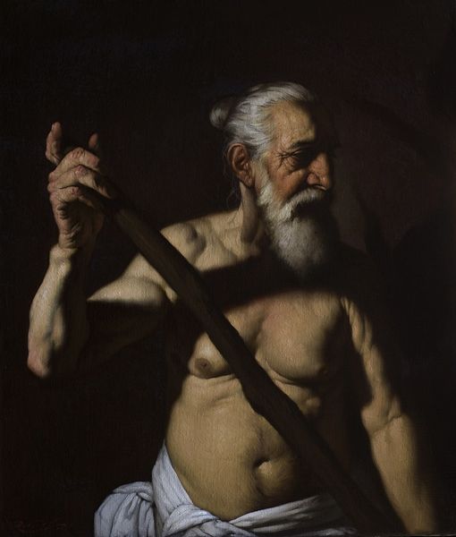 Editor: Here we have Giacinto Brandi's "Hermit Saint", thought to have been painted sometime between 1670 and 1680, and rendered in oil on canvas. The figure is striking, so austere in its simplicity, with all the muted tones and textures. What catches your eye, particularly? Curator: Beyond the Baroque style, the focus on materiality raises some interesting questions. Look at the impasto, the way Brandi manipulates the oil paint. What does it tell us about the artist’s workshop practices? Was this piece made for a wealthy patron or for a more popular audience, and how did that influence the use of pigments and canvas? Editor: So, you're thinking about the painting as an object, a product of its time? Curator: Exactly! Think about the social context too. Italy in the 17th century was deeply religious. How did workshops operate in relation to the religious authorities? Also consider the cloth partially draped over his lap. What does that fabric signify materially and economically? Editor: It's a simple enough detail, but one with far-reaching implications, like how different layers of meaning could be embedded through material representation. It brings to light Brandi’s awareness, or perhaps unawareness, of the society and workshop to which he belonged. Curator: Indeed. How labor, access to materials, even the consumption of art, all informed its creation. Brandi probably thought about it as an allegorical representation, but for us today, that can mean different things! What new perspectives are offered if you place him within a history of class and power relations? Editor: I guess seeing it this way adds depth and dimension, literally and figuratively. It's more than just the art, but the whole economy of art-making and the history behind even its smallest element. Curator: Precisely. By shifting our focus to the production process, we're moving beyond simple iconography.