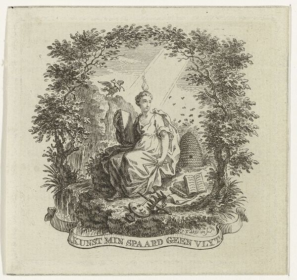 Curator: This engraving, created in 1776 by Augustin de Saint-Aubin, is titled "Cul-De-Lampe at the End of the Volume, Page 91, from Dissertation sur les attributs de Vénus..." Quite a mouthful! It resides here at The Met. Editor: It’s rather delicate. The framing elements almost overwhelm the central figure, Venus, making her feel precious, a jewel enshrined. I’m immediately drawn to the question of accessibility in representations of the female form during this period. Curator: Absolutely, considering this image stems from an academic dissertation on Venus's attributes, we have to acknowledge how these depictions served to define and confine understandings of beauty, desire, and female identity, particularly for elite consumption. Saint-Aubin was a known figure of the French Enlightenment. We might analyze how prints like these bolstered social stratification at that time, commodifying idealized beauty and dictating specific modes of looking. Editor: Looking at the crisp lines achieved by the engraving technique, and how meticulously each flower and drape is rendered, I wonder about the labour involved in its making, and about the cultural value placed upon the image-making craft itself during that moment in French society. The precision demanded in this kind of print production speaks volumes about artisanal specialization. Curator: The neoclassical style and allegorical theme are significant here. These artistic elements are inherently gendered. Think about how classical allusions were manipulated to reinforce specific narratives about gender roles and morality, influencing societal perceptions through the constant circulation of images just like these. Editor: Thinking about consumption, the work must also be situated within a visual economy in which this idealized Venus enters different spaces – whether aristocratic boudoirs, libraries, or the hands of print collectors. In these various spaces it carries meaning that also reflect how the female form can exist between being an everyday consumable and ‘high art’. Curator: I completely agree. The circulation of these kinds of images speaks directly to power dynamics in 18th-century France. Reflecting on our discussion, it reminds us that this image should encourage viewers to examine, critique, and resist narrow representations of gender and identity. Editor: Agreed, the emphasis on craft is really helpful to understand these power structures: material access, technical knowledge, labor, and even this very specialized act of printing.
