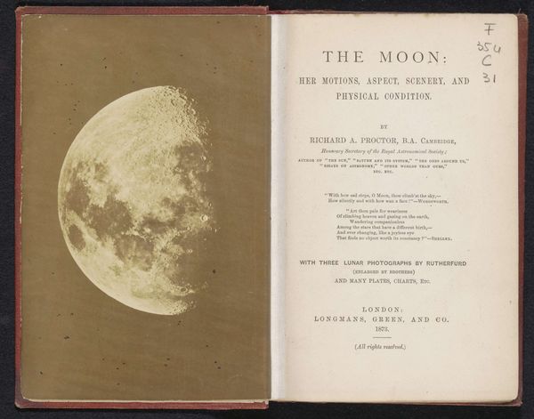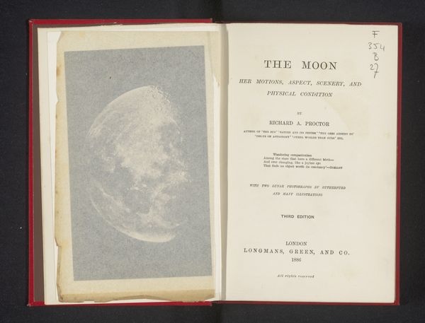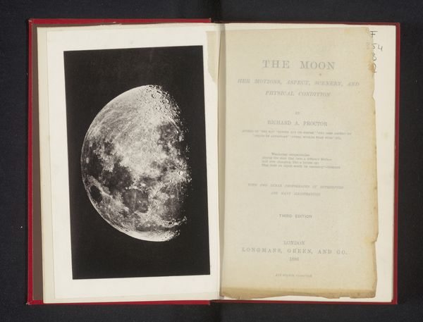 Curator: The gelatin-silver print, "Wassende maan", taken sometime between 1866 and 1880, presents a photographic study of the waxing moon. The original negative was by Warren De La Rue, and the print was made by Smith, Beck & Beck. Editor: It's remarkably crisp. The contrast between light and shadow carves out the lunar landscape so dramatically, and there's something deeply serene and contemplative about the image as a whole. Curator: The moon has held a central place in human imagination across cultures. We’ve mapped mythologies, cycles of time, feminine energy and tides to this symbolic orb. Do you think photography changes the symbolic relationship with something so primal? Editor: Absolutely. This image coincides with evolving cultural perceptions of scientific advancement. Early photographs of celestial bodies collapse romantic views of the night sky into empirical study. There's a fascinating tension between objective representation and the continued subjective associations people hold. For instance, consider how its presence influenced space exploration efforts… Curator: Very well put. The photograph's romanticism is undeniably intertwined with this new precision, in the almost mystical quest to document the unseen in scientific study. I feel like I am encountering it on multiple levels: it is an artifact, an observation, a historical object, and a document. Editor: Exactly. As it presents an astronomical body, its own place in time and society begs inquiry. Who had access to images like this, and what narratives did they construct around technological development or science at this time? Curator: Indeed. "Wassende Maan" prompts reflection on the interplay between artistic representation and evolving understanding of the world around us, literally and metaphorically. It seems photography forever changed both art and science. Editor: It's remarkable how this relatively simple image manages to weave together art, science, and societal progress into such a concise package. It prompts one to look at progress with curiosity.
