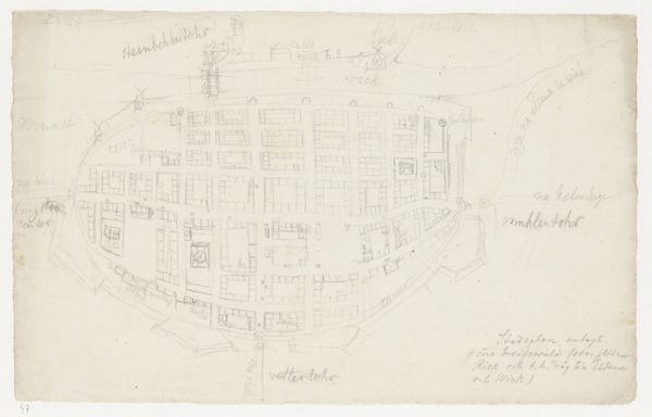 Jacobus Harrewijn created this detailed etching titled 'Plattegrond van Den Haag'. Notice how the lines defining the city's layout create a complex, interwoven grid. The composition, with its ordered arrangement of streets and buildings, offers a fascinating insight into the urban planning and spatial organization of The Hague. Harrewijn’s meticulous attention to detail transforms cartography into art. The etching employs line as a primary element to delineate the network of streets, waterways, and individual structures. This use of line is not merely descriptive; it also serves to structure our perception, guiding the eye through the urban landscape. Look closely at the contrast between densely packed areas and open spaces. This interplay challenges the idea of a uniform urban experience. The map is not just a tool for navigation, but a commentary on the lived experience of the city. How does this structured representation reflect or challenge the actual, lived experience of navigating the city?