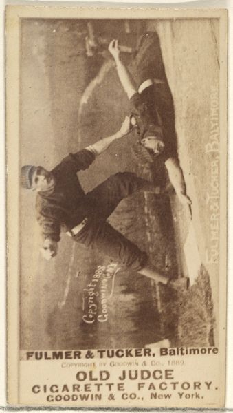 Curator: Standing before us is Joseph Norris's "Anchor," a gelatin-silver print likely made between 1870 and 1885. Editor: The sepia tones immediately evoke a sense of bygone industry, the weight of labor somehow embedded in the texture. There's something deeply melancholic about it. Curator: Indeed, the anchor itself has powerful symbolic weight, representing hope, stability, and safe harbor, particularly poignant perhaps in a port city bustling with maritime traffic. Editor: And yet, presented outside the context of the sea, stripped of its intended use, it becomes just another object—a study of material, mass, and the skill required to forge something of this size. Look at how it's laid almost unceremoniously against a nondescript wooden wall, we lose that narrative thread to begin to see only its composition, only the shape itself. Curator: I'm drawn to the very physicality of the gelatin-silver print, a photographic process allowing for sharper details and a broader tonal range. It is almost as if Norris is emphasizing the transition from reliance on hand craftsmanship to machine-made uniformity during this period. How do the material properties echo the tension between labor and machine that was prominent during industrial advancement? Editor: That tonal range lends depth to the photograph and a deceptive sense of reality. The sharp blacks emphasize that industrial age reality. There's this dance happening where you could imagine the workers that would work the material but what also lies in the photograph, is an awareness of its own material self: it reminds us that this is made, touched and formed for the sake of labor. Curator: Absolutely. The anchor also mirrors human struggles against overwhelming forces, offering solace. Its weight reminds us of burdens and responsibilities, whether personal or societal. I can also sense continuity in the weight the image carries: how does its form influence ideas and belief, past to present? Editor: Looking at it from this perspective, I think seeing the details helps me acknowledge that its social construction is built upon craft, culture, materiality and labor; there's this undeniable story the anchor itself represents through process and physical build that is both intimate and monumental. Curator: A captivating glimpse into material, symbol and memory. Editor: A poignant, quiet study of the anchor as a marker of both human ingenuity and relentless work.