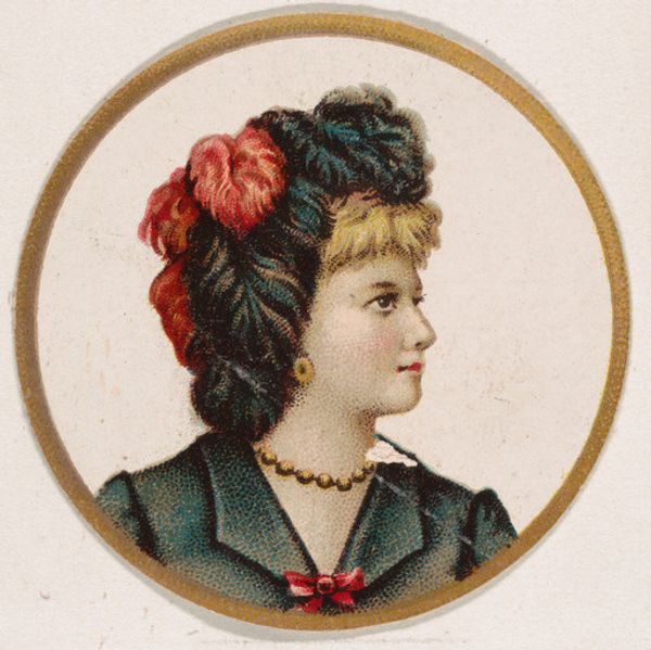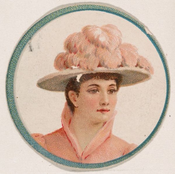 This small round card showing a woman in a feathered hat was produced by the Kinney Brothers Tobacco Company as part of their 'Novelties' series. Though seemingly innocuous, it provides a lens onto the social and cultural values of its time. These cards, distributed with tobacco products, were essentially advertisements, preying on consumer desires and associating them with the act of smoking. The image of a fashionable woman was a common motif. Here, the focus on elaborate headwear speaks volumes about the importance of appearance and social status in the late 19th century. The card reflects the growing consumer culture of the United States, where the commodification of beauty and the pursuit of fashionable trends were becoming increasingly prevalent. To understand this seemingly simple image, we can look at fashion history, advertising ephemera, and company records. In doing so, we reveal the complex interplay between art, commerce, and social identity.