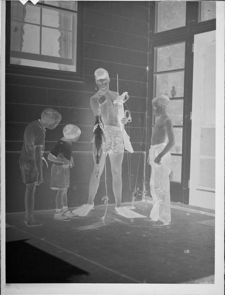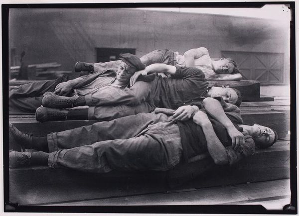 Curator: This untitled photograph by Jack Gould captures two men working in a foundry. It's a small gelatin silver print held at the Harvard Art Museums. Editor: My immediate thought is "weight." The physicality of labor just radiates from this image. You can almost feel the strain. Curator: Absolutely. It's a testament to the everyday toil, the unseen effort that shapes our world. The way Gould uses light emphasizes the texture of their clothes, the grit of the work. Editor: And the box itself, whatever it holds, becomes a symbol of production. It's not just about these two men, but everyone involved in the labor and the materials they are using. It's about a community. Curator: Precisely. It invites us to consider the human element in the grand scheme of things. A real nod to the silent heroes of creation. Editor: I agree. I think Gould challenges us to see the extraordinary in the ordinary, and perhaps understand what it takes to make just about anything.