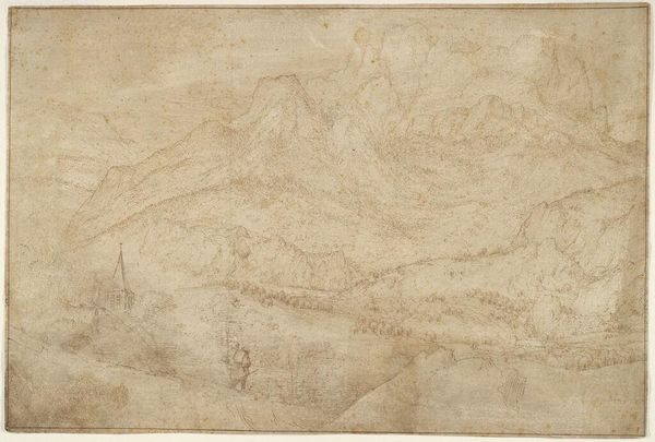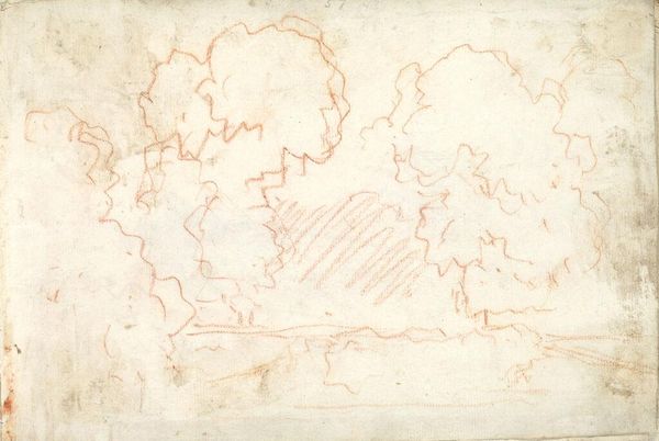 Curator: This is a drawing titled "Landscape; verso: Landscape with an Equestrian Statue" by Jean-Honoré Fragonard. Editor: It has a rather ghostly, fleeting quality, like a memory of a landscape rather than a depiction of one. Curator: Indeed, it's more of a sketch. Made with a reddish chalk, we can see the artist’s process, the build-up of lines to suggest form and depth. Editor: And in its sketchiness, I see a commentary on the fleeting nature of aristocratic leisure, the very class that Fragonard served. The wispy trees almost mock their sense of permanence. Curator: Interesting point. Consider that red chalk was a readily available material; the labor involved in its use, the ease of its application, stands in stark contrast to the labor extracted from the peasantry that funded such leisure. Editor: This piece allows us to reconsider the relationship between art and social power, inviting us to critique the very foundations of its creation. Curator: Precisely, seeing art as entangled in the material and societal realities of its time deepens our understanding. Editor: Absolutely, it gives us a richer perspective, forcing us to question the narratives embedded within the art itself.