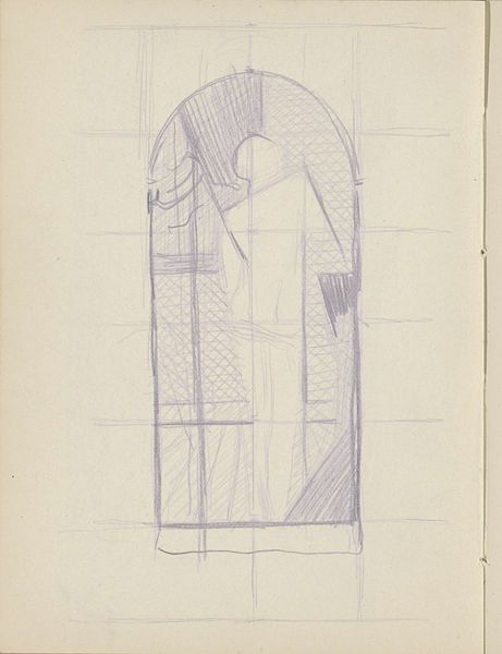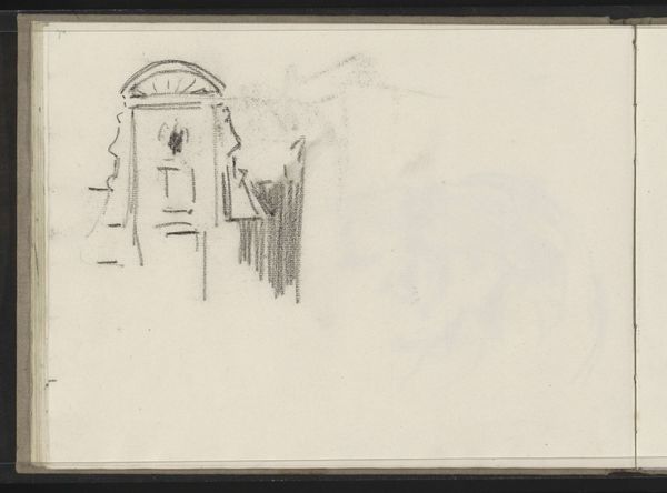 Curator: So, here we have "Facade of a Building", a pencil drawing on paper created around 1901 by Gerrit Willem Dijsselhof. It's currently housed here at the Rijksmuseum. Editor: Well, my first impression is a bit raw, you know? It's just sketched, like a thought captured quickly. I dig the raw lines—almost feels like peeking into the artist's brain while he's designing this thing. A bit rough, like seeing the bones before the flesh. Curator: Exactly. The sketch showcases Dijsselhof's clear engagement with Art Nouveau. This style embraced ornamentation and natural forms. Think about the historical context: architects wanted to move away from industrial design and mass-produced elements. Dijsselhof captures this sentiment perfectly here, focusing on detail and handcrafted aesthetic values. Editor: Oh, yeah, I totally see the Art Nouveau thing. But what grabs me are the strange shapes that almost seem to be forming eyes or faces, hidden amongst the detail of the structure itself, and is that foliage? The suggestion of foliage, I mean. Gives it this kind of organic, almost fantastical vibe like a living building, you know? A building that’s breathing or dreaming something into being. Curator: Yes, I understand, but in this study for an architectural element you can also recognize how structures could also be interpreted to embody organic attributes and carry a certain status in the collective conscious through architectural detail. The aesthetic is about harmonizing form with natural growth and cultural value, expressing a kind of socio-artistic utopian vision. Editor: Interesting. You’ve given me a lot to think about. I’m wondering whether I was more focused on how this thing actually ‘feels’. Now, the questions start to come. Which kind of building was Dijsselhof imagining? What was the goal when he captured it so quickly on paper? And ultimately I just wonder how different his concept of the facade finally looks compared to his initial design… Curator: Those are certainly insightful questions, ones I invite visitors to contemplate on their own after this short introductory, perhaps? As always, observing art helps us understanding cultural context while exploring different visions on how these interact, don't you think? Editor: Absolutely! You know, every work holds more stories than its original intention allows it to tell. It will depend on who gazes at it to enrich these even more…