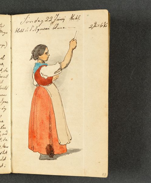Curator: This drawing, titled "En moder og hendes lille pige," which translates to "A Mother and Her Little Girl," was created by Nicolai Abildgaard in 1777. It's a beautiful example of neoclassicism rendered in watercolour and coloured pencil. What strikes you about it? Editor: The overwhelming whiteness. The drawing is so faded and sparse, almost ethereal, like a memory fading with time, yet retaining a crisp quality in the lines. Is that intentional, or is that the result of the watercolour aging? Curator: That's a fantastic observation. The paper has aged, certainly, but the lightness is very much a feature of Abildgaard’s neoclassical style, which embraced simplicity and a sense of the ideal. Note the subjects’ drapery: It’s rendered in flowing, spare lines. Editor: I'm wondering about the materiality. It’s a drawing, so ostensibly preparatory. What kind of labor went into this seemingly quick rendering? Curator: A fascinating point, the labour that is hidden to present simplicity and grace. Abildgaard, while influenced by the classical ideals of his time, saw himself primarily as a history painter. Perhaps he conceived it as part of a larger narrative tableau? His primary employment, if one could call it that, would have come from larger works commissioned. Editor: This brings up how we think of "drawing" itself – often understood as something quickly jotted. The image gestures towards grander classical narratives and history painting—yet, it's confined within this small scale, delicate medium. Curator: Indeed. It makes me think about intimacy. While neoclassicism often carries a sense of grandiosity, here we see a quieter moment. The mother holds a strand of thread, the child reaches up. It suggests domestic life, perhaps even a little glimpse into the artist's own. And that muted palette actually intensifies this feeling for me. The work whispers, rather than shouts. Editor: I agree, the colour certainly invites closer observation and intimacy, drawing us to focus on the small domestic and interior life against the background of greater society and wealth. I would say its worth remembering to what lengths the artist and indeed other artists have gone to present that particular image of classical antiquity, despite it never truly existing. Curator: A fantastic point to consider: Abildgaard and his contemporaries reimagined and idealized the classical past through drawings such as this one. Thanks for those wonderful comments! Editor: Likewise! It has been interesting reflecting on the dialogue between form, material and idealised subjecthood.