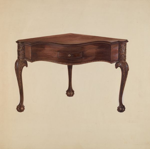 Owen Middleton made this "Tea Table" with what looks like watercolor. The way he's handled the paint, so smooth and controlled, it’s like he’s trying to capture not just what the table looks like, but its essence, its solidity, its place in a room. I’m drawn to the legs, how they curve and taper, a graceful line that seems to defy the weight they carry. There’s a real delicacy in the touch, in the rendering of the wood grain. You can almost feel the smoothness of the polished surface. The light seems to catch on the edges, giving it a subtle glow. It reminds me a little of some of the Shaker artists, with that same attention to detail and quiet simplicity. But Middleton brings his own sensibility to it, a kind of understated elegance that makes you want to pull up a chair and have a cup of tea. Art is such a conversation across time.