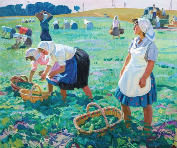 Camille Pissarro made this oil on canvas, *Paysans dans les champs, Éragny*, in France. Painted in the late 1880s, Pissarro’s rural scenes can be understood in relation to the social and political landscape of France, particularly the debates around industrialization and agrarian life. Notice how Pissarro emphasizes the dignity of labor through his detailed portrayal of the peasants, perhaps as a comment on contemporary class structures. The pointillist technique, with its focus on optical mixing, invites the viewer to actively engage with the scene, reflecting a broader interest in democratic ideals and challenging the established academic style. To fully grasp the context of Pissarro’s work, it’s helpful to dive into archival documents and contemporary periodicals that reflect these debates. By examining the social conditions and artistic theories of the time, we can gain a richer understanding of the painting’s historical significance and its role in shaping perceptions of rural life.