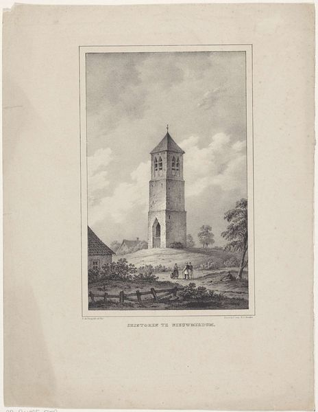 Curator: This engraving captures the "Grafmonument voor Abraham des Amorie van der Hoeven (I)", created by Frans Molenaar between 1855 and 1886. Editor: My initial reaction is melancholy, like witnessing a quiet farewell in a time long past. The print's delicate, almost ghostly, quality enhances the mood. Curator: It certainly evokes that sentiment, doesn’t it? What strikes me is how the medium itself—engraving, with its intricate lines—reflects the care and labour involved in commemorating someone’s life in that era. It was a whole production, crafting a visual representation of remembrance. Editor: Exactly! You can almost feel the engraver's hand at work, painstakingly detailing every leaf, every shadow on the monument. This engraving speaks volumes about the culture of mourning and memory in the 19th century, where these monuments weren't just about remembering someone but performing remembrance in a very public, material way. Curator: And see how the artist nestled this impressive memorial into its surrounding landscape? It creates such a strong interplay between human-made and natural elements. The towering trees behind the stone seem to stand as solemn witnesses. This piece bridges the stark realism with the ideals of Romanticism, with a touch of landscape painting combined. Editor: Indeed. While a modern photo would give you something entirely different, engravings were more about establishing an aspirational or timeless image of legacy, I mean, and considering how labor-intensive this whole engraving process was…It really brings forth some questions about how grief was produced and consumed! Curator: Right! Almost as if grief itself became another crafted product…a commodity. Anyway, the image allows us to explore the visual culture surrounding death, reminding us of the enduring need to preserve, reflect, and immortalize memories through our artifacts. Editor: Precisely! It encourages us to think about our relationship to objects and our enduring attempts to render that very elusive emotion… gried visible and, perhaps, tangibly present.