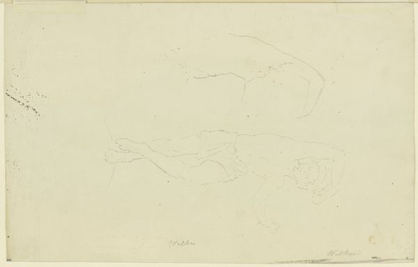 Editor: This graphite and pencil drawing, called "Landscape" by Peter Becker, looks like a preparatory sketch. The lines are so light; it’s almost ephemeral. What catches your eye about this piece? Curator: Considering it's a landscape sketch, I'm interested in Becker's choice of medium and how that shapes our understanding. Graphite and pencil – easily accessible, almost utilitarian materials – position this work outside the traditional hierarchy of landscape painting. Is this landscape meant to be high art or, is this about the labor inherent in representing a space, the materiality of place? Editor: That’s a fascinating perspective. I hadn’t considered the socioeconomic implications of the materials themselves. Does the lack of vibrant color also influence its interpretation? Curator: Absolutely. Color is a commodity; it demands investment. The monochrome emphasizes process: the act of observing and translating a three-dimensional world onto paper with readily available materials. Look closely. Do you see how Becker renders forms with seemingly hurried, overlapping lines? It implies a focus on immediate capture of information rather than the creation of an idealized vista. Editor: It’s true, it does feel urgent, like a record of a specific moment and place. It almost feels like the personal sketchbook is being foregrounded. Is that typical for landscape drawings from this period? Curator: That’s exactly it. By using these modest materials, Becker potentially challenges the concept of a formal, finished "masterpiece," presenting us with the bare bones of representation, thus underlining the work and the social circumstances within its process and production. Editor: I never considered how much the choice of materials influences the reading of an artwork. This makes me see the piece, not as an incomplete work, but as a conscious commentary. Curator: Precisely! It's about considering art's function and creation in a wider system. Every mark, every choice of medium reveals something about that.