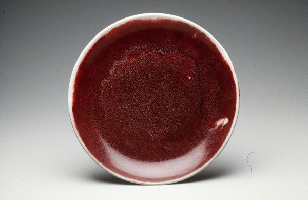 Curator: This is Jiro Yoshihara’s "Circle," a watercolor from 1963. The title is straightforward, isn't it? Editor: At first glance, the vibrant colours and energetic brushstrokes feel quite impulsive. It almost conveys a sense of controlled chaos. What is your immediate impression? Curator: Well, knowing Yoshihara's involvement with the Gutai group—their rejection of traditional art forms—this piece seems like a fascinating statement. We're seeing abstraction as resistance to the political climate in postwar Japan. There is a breaking free of conventional representation. Editor: I notice that the red circle itself seems incomplete, a reminder that symbols are always fluctuating and developing. There are also the distinct splotches of red throughout the white area. Curator: Precisely, that openness, incompleteness. In Gutai philosophy, destruction was considered a creative act. It embodies their focus on action, on the material qualities of paint itself. What appears spontaneous actually involves the liberation of form. Editor: Looking at the dominance of the circle itself, this reminds me of the traditional Zen Buddhist 'enso' symbol. However, where the 'enso' typically represents enlightenment and emptiness, here it has been completely exploded with color and paint, defying traditional notions of symbolism. Curator: I agree that it breaks from tradition. By choosing a simple form, and then imbuing it with a bold, almost violent energy, Yoshihara is forcing a reassessment. We're not simply looking at a shape, we're confronted with an artistic declaration. There is a strong desire to reject the established artistic order. Editor: Indeed, art is perpetually being transformed by these gestures and actions. What the work signifies may continue to change, according to current understanding. Curator: A powerful example of how an artist, using a single motif, can open up complex and ongoing conversations about art, culture, and politics. Editor: Yes, symbols constantly take on multiple meanings when approached by varying perspectives, transforming visual culture for future generations.