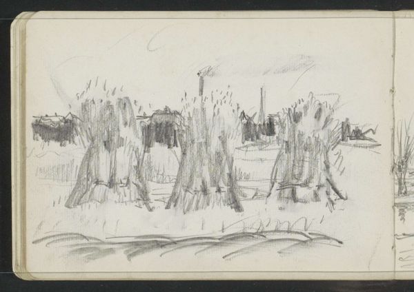 Here we see Johanna van de Kamer's pencil drawing of sheaves of wheat in a field. Van de Kamer lived at a time when women artists were beginning to find their voices, often depicting domestic scenes and landscapes that reflected their immediate environments. This drawing might seem simple, but consider the historical context: land and agriculture have long been tied to notions of identity, labor, and survival. As a woman artist, Van de Kamer was likely observing and interacting with this landscape from a particular vantage point, one that perhaps differed from her male counterparts. The act of drawing, of capturing these sheaves of wheat, becomes an act of claiming space, of asserting her presence within a world often dominated by men. What does it mean for a woman to depict the harvest, a traditionally masculine domain? It's a quiet gesture, perhaps, but one that invites us to consider the diverse perspectives shaping our understanding of land, labor, and identity.
