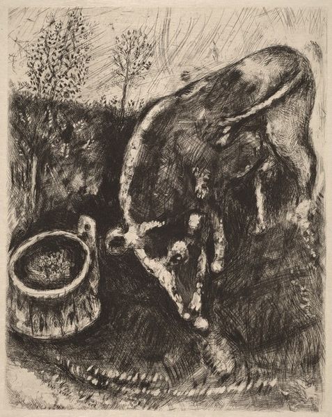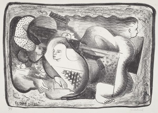 This is a print made by Robert M. Gatrell, but when or exactly how is a mystery to me. What strikes me is the way Gatrell piles objects – sculpted heads, a strange bowl, and what looks like a window – all in a heap. The process feels very intuitive. There’s a scratchy, almost frantic quality to the marks. He has a lot of different tones, from solid blacks to a lovely pale grey, and the texture feels a bit rough. He really uses this to describe form in a very tactile way. Look at the way he’s rendered the central head – notice the graininess of the print, almost like skin. There’s a real physicality to the work, a sense of the artist wrestling with the materials to bring these strange objects to life. This reminds me a bit of Picasso’s explorations of African masks. It’s as if Gatrell is also trying to tap into some kind of raw, primal energy. The print doesn’t offer any easy answers, but I think that’s precisely the point. Art isn’t about perfect renderings, it’s about opening up a space of possibility, of the unknown.