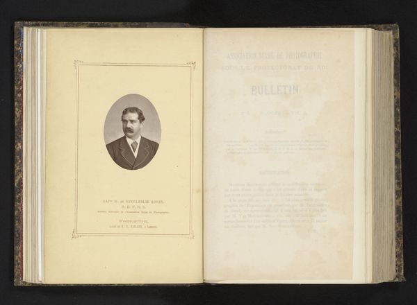 Curator: What a wonderfully preserved memento. This is an albumen print from 1862 by Jeremiah Gurney, entitled "Joseph Cruickshank Talbot." Editor: It feels intimate, almost like discovering a forgotten page in a family album. The oval portrait set against the text—it has such a composed stillness. Curator: The composition is quite deliberate. The albumen print, with its characteristic sepia toning, gives a classical, almost romantic feel, don't you think? The artist has clearly worked with tonal range in mind to achieve clarity within the small oval format. Editor: Indeed. And that choice of the album itself. Photographic portraiture during the Civil War was powerfully intertwined with the burgeoning middle class in America—as this print reveals a powerful minister, his identity becomes part of an increasingly formalized, bureaucratized social space. It suggests societal efforts to both classify and remember their key members. Curator: The framing also presents a particular vision. Notice how the geometric decorative patterns in the frame of the page highlight the rounded edges of the inner portrait? They set off the face and soften the potential severity of such a clerical figure. There's almost a halo-like effect created by the contrasting shapes. Editor: Certainly, and Gurney operated a studio that understood how to leverage the market for visibility. Figures like Talbot are caught in the amber of public persona making and documentation—photography in the 19th century played a pivotal role in immortalizing important lives within the emerging cultural landscape. Curator: Thinking about the figure as captured in albumen gives him presence—he confronts the viewer across time with a clarity difficult to forget once it’s absorbed in light and reflected in surface, tone, and line. Editor: Absolutely, and reflecting upon the circulation of these photographic portraits can enable fascinating insight into the distribution of power and the social roles attributed to figures like Joseph Cruickshank Talbot. Curator: Seeing these qualities enmeshed emphasizes the work's success and invites deeper reflection. Editor: Agreed, it makes one curious to look for more prints such as these and piece together the whole puzzle.