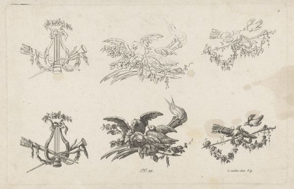 This anonymous print presents a series of heraldic crests, each a microcosm of civic pride and identity in the Dutch landscape. These emblems, adorned with eagles and crowned helmets, are not mere decorations, but visual anchors to social memory. Consider the recurring motif of the eagle. From Roman standards to Napoleonic symbols, the eagle has embodied power and authority across millennia. Here, it crowns the crests, yet its presence also evokes a deeper, almost subconscious connection to historical archetypes of leadership and dominion. These images remind me of similar emblems found across Europe, each bearing local symbols of significance. The act of bearing a symbol is a psychological assertion, a claiming of identity rooted in shared history, passed down not linearly, but in a cyclical dance. The symbols adapt, evolve, and reappear, carrying layers of cultural meaning.