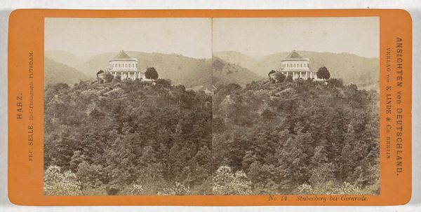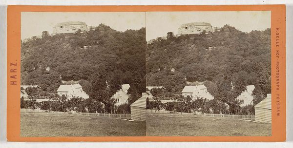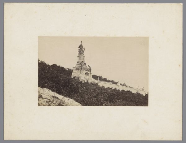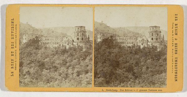 Editor: Here we have "Gezicht op Schloss Heidelberg," a gelatin silver print taken in 1877 by Sophus Williams. It shows Heidelberg Castle perched high above a dense forest. There's a misty, almost dreamlike quality to it. What do you see in this piece, beyond the obvious postcard appeal? Curator: Ooh, postcard appeal indeed! But there's something much deeper brewing beneath that romantic sheen, don't you think? It feels like a yearning for something just out of reach, doesn't it? The way the castle sort of fades into the hazy distance – almost disappearing like a half-remembered dream. What era do you think of when you view it? Editor: Romanticism, definitely! It's right there in the dramatic landscape and the way the light catches the castle ruins. Was Williams trying to evoke a sense of nostalgia or maybe even loss? Curator: Precisely! He presents that ruin with reverence, and I would bet my hat, my imaginary hat that he saw this as a place that holds something within that the world has either forgotten, or never realised in the first place! A photographic *memento mori* perhaps, which captures both beauty and decay at the same instant. Editor: So, more than just a pretty picture? Curator: Oh, my dear, far more! I see it as a little meditation on time, memory, and our fleeting place in the grand scheme. Did Williams himself see this way when he took the photograph, or did he see that vision appear through the photograph once he took it, printed it, and reviewed it? That's for us all to interpret I think! It makes you wonder about the stories that are simply floating within it all, doesn't it? Editor: Absolutely! I initially saw it as just a pretty picture, but now I'm seeing layers of meaning I completely missed. Curator: Excellent! You have taken your first steps into diving into what the art feels *beyond what you know*. And I will hold that truth closely.