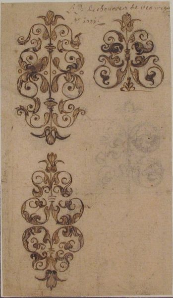 Editor: This delicate engraving from the late 16th century, titled "Design for a Brooch with Two Heart-Shaped Pieces" by Theodor de Bry, feels surprisingly modern to me. I’m really drawn to its intricacy. What stands out to you about this design? Curator: It's more than just intricate, wouldn't you say? Look closely. Notice how de Bry merges the organic—those swirling, almost vegetal forms—with the rigid structure of the brooch itself. It's a dance between nature and artifice, a miniature theatre of contrasting forms. And those faces nestled within… almost mischievous, aren’t they? Editor: I do see what you mean. I had just viewed it as ornamentation, but those faces do seem playful. Why incorporate faces in a jewelry design? Curator: Jewelry of this period was rarely just decorative; it carried meaning, whispers of status, affection, or even hidden beliefs. These faces could be symbols, protective amulets, or perhaps even caricatures. Think of them as tiny secret languages embedded within the object. Does that alter your perspective? Editor: Definitely! I hadn't considered the brooch as a carrier of such personal meaning. I now think of the wearer broadcasting private sentiments. Curator: Precisely! It's like wearing your heart, or at least a hint of its desires and anxieties, on your sleeve… or, in this case, perhaps pinned to your doublet. Editor: This has totally shifted how I view Renaissance jewelry. I thought of them only as expensive and shiny. Thanks for illuminating this little gem of an artwork! Curator: The pleasure was all mine. And remember, dear Editor, the most captivating art often hides its secrets just beneath the surface. Keep digging!